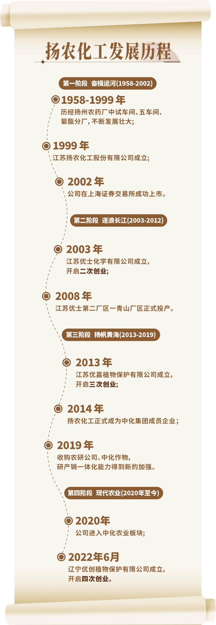 今天的扬农化工已经走过沿河、沿江、沿海发展的“三次创业”征程,成长为全球拟除虫菊酯原药核心供应商,全球农化企业10强中唯一的中国本土企业。公司核心品种拟除虫菊酯拥有70多项专利技术,是全国制造业单项冠军产品,2018年获得中国工业大奖。多年来,公司始终聚焦农化主业,增强核心功能,形成了完整的研产销链条和一体化的运营体系,产品研发、生产运营、工程转化、HSE管控等核心能力居行业领先水平。