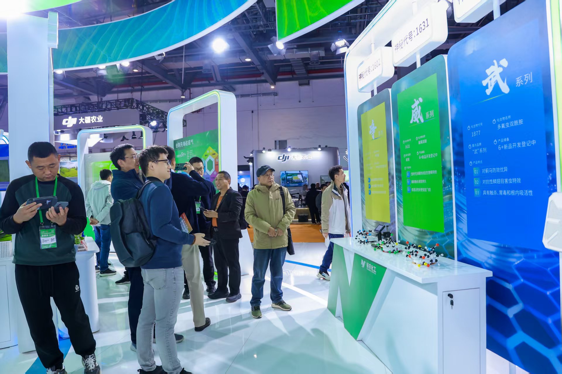 扬农化工以“创制先锋 制胜未来”为主题,携即将走向市场的“武”“威”“净”三款创制产品亮相展会,成为会场关注的焦点。“威”“武”“净”三款系列产品是以扬农近期取得通用名的“氟螨双醚”“多氟虫双酰胺”和“喹菌胺”为主要成分,分别定位杀螨、杀虫、杀菌领域,将为保障粮食稳产增收持续作出积极贡献。